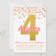 Pink Gold Glitter Confetti Girl Fourth Birthday Invitation