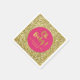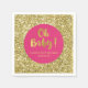 Customisable napkins for baby shower in fuchsia hot pink with gold sparkle confetti and hand lettered style text reading oh baby.