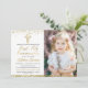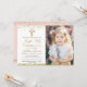 Pink Gold Glitter Cross First Holy Communion Photo Invitation