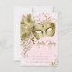 Pink and gold masquerade party RSVP with beautiful gold jewel feather mask on an elegant pink bokeh background and gold glitter design on the back. This beautiful pink and gold masquerade party RSVP is easily customised for your event by simply adding your details in the font style, colour and wording of your choice. You can also change the background colour.