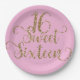 Pink & Gold Glitter Sweet 16 Birthday Party Paper Plate