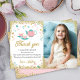 Pink Gold Glitter Tea Party Girls Birthday Photo Thank You Card