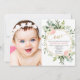 Pink gold greenery elegant girl 1st birthday photo invitation