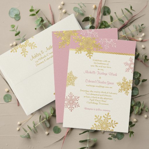 Pink Gold Ivory Snowflake Winter Wedding A7 Envelope