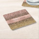 Pink Gold Leopard Print Sparkle Square Paper Coaster