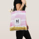 Pink & Gold Monogram Striped Watercolors Tote Bag