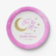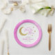 Pink Gold Moon & Stars Over the Moon Baby Shower Paper Plate