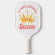 Perfect gift for your favourite woman who loves to play pickleball. A large gold crown with pink gems sits in the centre of the paddle. Pickleball is written above in pink bold typography. Queen is written below in bold vintage script.