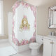 Pink and gold princess shower curtain with pretty gold floral carriage on a beautiful pink and gold swirl floral background. This princess shower curtai is easily customised with a name or the text of your choice in the font style you prefer. You can also change the background colour on this pretty princess shower curtain.