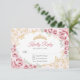 Pink gold floral Quinceanera RSVP reply card. Features, script font, gold butterflies, watercolor blush pink roses and tiara. Perfect for an elegant princess style glam celebration. Personalize with your own details.