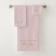 A beautiful pink and gold design incorporating signature script font typography. A classy and stylish bath towel set design ideal for anyone. Customise the pink and gold monogram text and script typography bathroom towel set and make it your own!