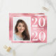 Pink with gold stars custom photo graduation announcement postcard, designed for a student graduating in 2020, but customisable for any year.