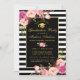 Watercolor Pink Blush Gold Floral Graduation Party Invitation Card with Black & White Stripes - Photo Back