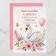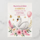 Make your child's special day unforgettable with this enchanting swan princess birthday invitation! Featuring a graceful white swan wearing a golden crown, surrounded by soft pink roses, feathers, fluttering butterflies, and a cheerful pink balloon, this design is perfect for a royal celebration. The delicate pink and gold colour palette adds a touch of magic and charm — ideal for birthdays, baby showers, or any princess-themed event. Customise all text to suit your event details, including name, date, time, venue, and RSVP. A whimsical and stylish invitation that sets the tone for a truly memorable day!