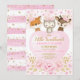This adorable invitation features girly pink & gold hearts confetti, blush watercolor flowers and cute woodland animals
