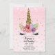 Pink & Gold Unicorn Floral Horn Birthday Party Invitation