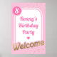 This welcome sign features a modern pink and gold design. The sign can be customised to suit any event. The script "welcome" heading is an image that cannot be edited. All of the other text is fully editable. For more advanced customisation of this design, simply select the "Customise It" button above.