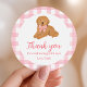 Say thanks in the sweetest way with this round sticker featuring a hand drawn golden doodle and a pink gingham border. Drop in your own message or name, then seal favor bags, gifts, or envelopes with a dash of puppy charm—perfect for “One Golden Year” parties, dog-themed birthdays, or any celebration that could use a wagging tail.
