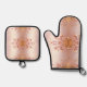Beautiful Pink Golden Leaves Floral Oven Mitt & Pot Holder Set