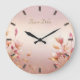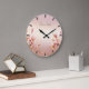 Pink Golden Leaves Floral Wall Clock