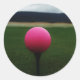 Pink Golf Ball on a mountain golf course Classic Round Sticker