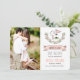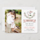 A lovely golf themed save the date that the couple who loves to golf together or plans on having a golf themed wedding is sure to love. A sweet laurel wreath with pink flowers, hearts and leaves surround a golf ball on a golf tee next to a golf pin flag wearing a bow tie. 4 photos can be added to this save the date invitation card. One on the front and three on the back. Artwork © Chrissy H. Studios, LLC. All rights reserved.