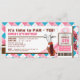 Pink Golf-themed Birthday Party Ideas for a girl. Can you keep your eye on the ball? Take a swing at these mini golf-themed ticket invitation featuring a golf bag filled with golf clubs on an admit one ticket pass invitation design. All text are editable, you can edit this putt putt golf tournament ticket for baby shower, birthday party, mini golf tournament party and so much more!