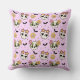 Pastel Goth Pink Kawaii Skull Pillow - A spooky and cute decorative throw pillow featuring a repeating pattern of cartoon skulls with heart-shaped eye sockets, yellow and pink flowers, and little black bats on a soft pink background. Perfect for adding a touch of spooky season charm to any room for girly goth. This pastel goth and kawaii-inspired cushion is ideal for Halloween decor, alternative aesthetic bedrooms, or anyone who loves a mix of creepy and cute.