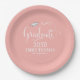 This design features a graduation party supplies paper plate, with a brush script, calligraphy typography, a simple minimalist, classic modern, with a mortarboard grad hat, and minimal, unique cool, creative style.