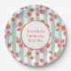 Pink Grapefruit Pattern on Green Stripes Birthday Paper Plate