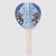 Pink Graphic Flowers on Blue-wood-fabric Texture Hand Fan
