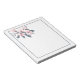 A notepad with a pretty watercolor illustration of pink flowers with gray leaves on a single stem. A modern elegant botanical design.