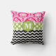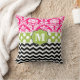 Show off your personal style in a fun way with this hot pink and black damask and chevron print monogram pillow.