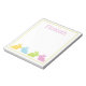 This cute notepad features adorable bunny rabbits in sweet shades of pink, blue, green and yellow on solid white. Personalise with your choice of name or special text in matching pink. Makes great party favours for Easter or any time of the year!