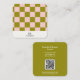 This Modern Pink and Olive Green Chequered Square Designer Business Card has a trendy chequerboard pattern in shades of pink. Great for an interior designer, you can change it to your desired profession, too. The template comes with space for your initials along with essential details about your business. Additionally, a QR code is incorporated, just add your URL and it will be created for you. Give easy access to your web page and socials. Make a lasting impression with this chic and minimal business card that reflects your unique style and professionalism.