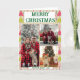 Rustic pink & green Christmas trees on holiday card. Perfect for the season of giving.