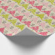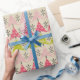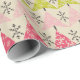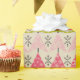 Pink & green abstract Christmas trees with snowflakes wrapping paper.