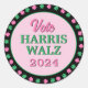 Pink Green Clover 2024 Vote Harris Walz Classic Round Sticker