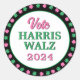 Pink Green Clover 2024 Vote Harris Walz Classic Round Sticker