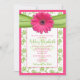 Pink and green floral damask, pink gerbera daisy flower Catholic holy first communion invitation. This hot pink and spring green damask floral communion invitation is currently customised as a First Communion invitation, but it would work well as a confirmation, baptism, or christening invitation as well. Just change the wording. NOTE: This is a flat, printed design without any raised or 3D embellishments. The pink daisy flower and green ribbon are printed on the paper.