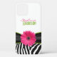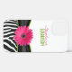 You can personalise the name on this chic black, white, pink, and green zebra print and gerbera daisy customisable case. Fun and cheerful featuring a black and white zebra print design and a pretty hot pink gerber daisy flower. This girly design makes a great gift for her. To personalise the name, use the personalise tools. For more extensive changes (font, font colour, font size, text placement), use "customise it". NOTE: This is a flat printed design without any 3D or raised embellishments.