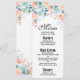 Event menu with an elegant floral border. Flowers and leaves in pink and green.