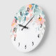 Pink & Green Floral Border Large Clock