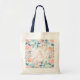 Tote bag with an elegant floral border. Flowers and leaves in pink and green.