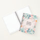 A personalised spiral notebook with an elegant floral border. Flowers and leaves in pink and green.