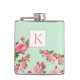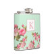 Pink Green Floral Monogram Bridesmaid Flask