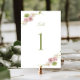 Pink Green Floral Wedding Table Number