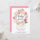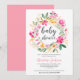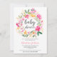 Pink green floral wreath watercolor baby shower invitation