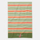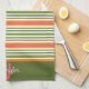Pink Green Modern Stripe Stylish Initial Last Name Tea Towel