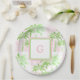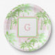 Pink Green Palm Tree Preppy Ombre Square Monogram Paper Plate